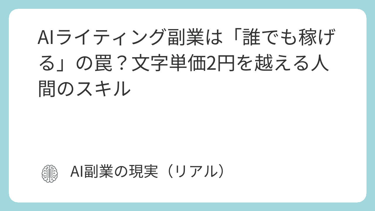 堅実タスク攻略ガイドAIライティング副業は「誰でも稼げる」の罠?文字単価2円を越える人間のスキル